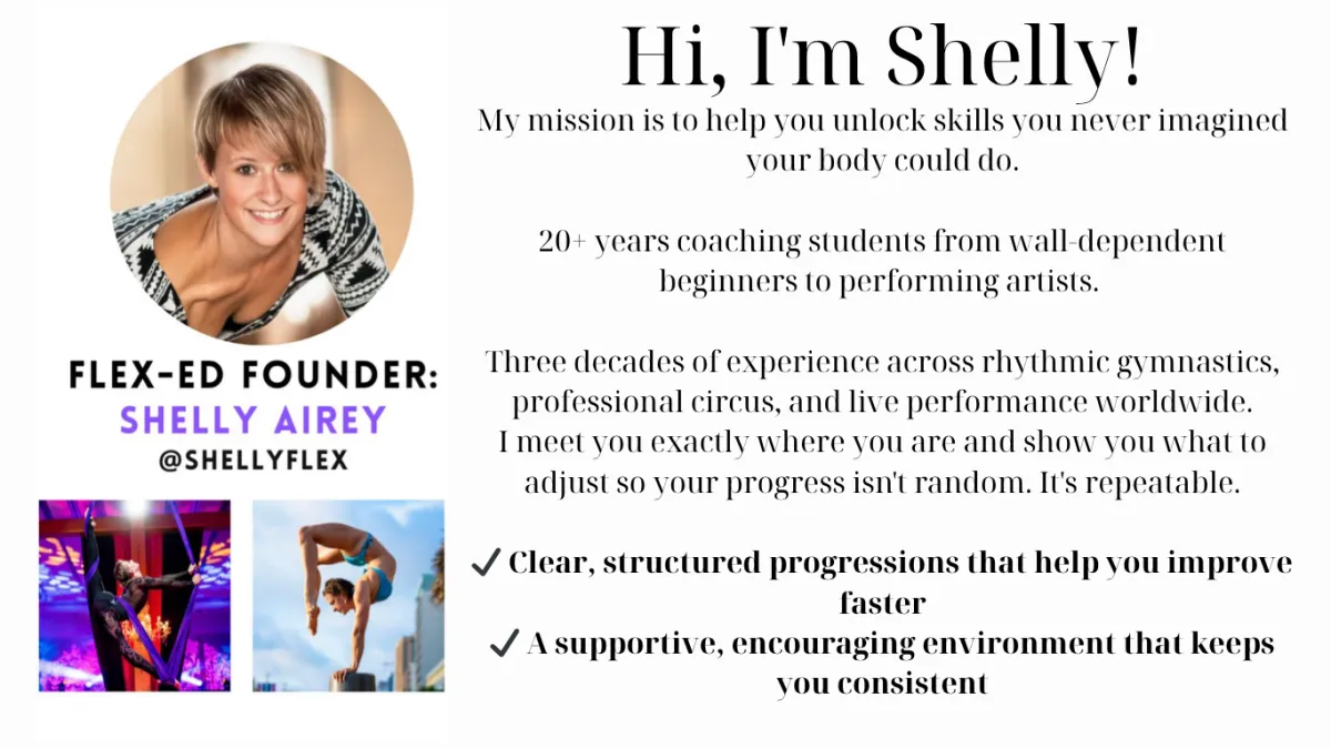 No — FLEX-ED is a well-rounded program. You also get flexibility classes (including splits boot camp and shoulder/back routines), calisthenics, and strength sessions. Splits flexibility directly improves your presses and compression. Shoulder mobility unlocks deeper tucks and cleaner lines. Strength work builds injury prevention and the pulling/leg work your body needs to balance all the pushing. It's all designed to work together.