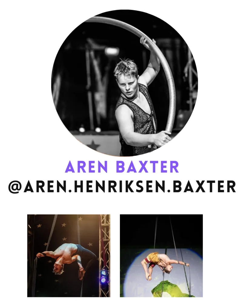 Aren is a New Zealand Circus Artist specializing in multiple different disciplines including Pole Straps Cyr Wheel and hand-balancing, started circus when he was 14 and found immediate passion for it and haven't stopped since.