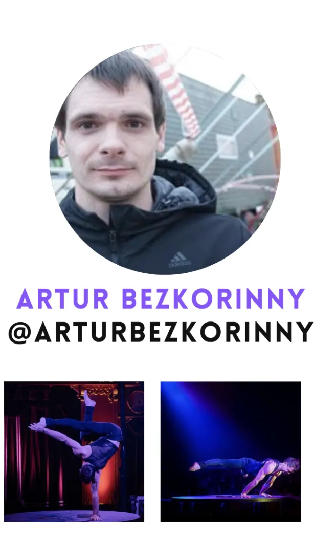 Artur is recognized as one of the best hand-balancers in the world. Born and raised in Ukraine, he has performed all over the globe with Cirque De Demain and other cirque productions.