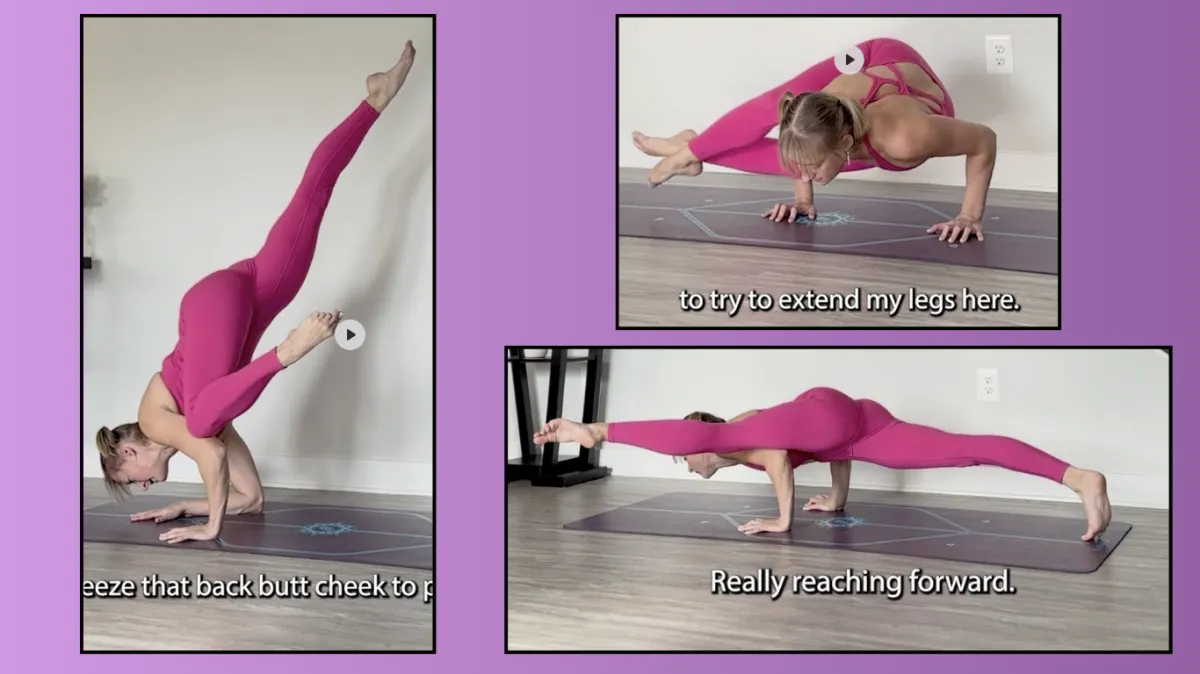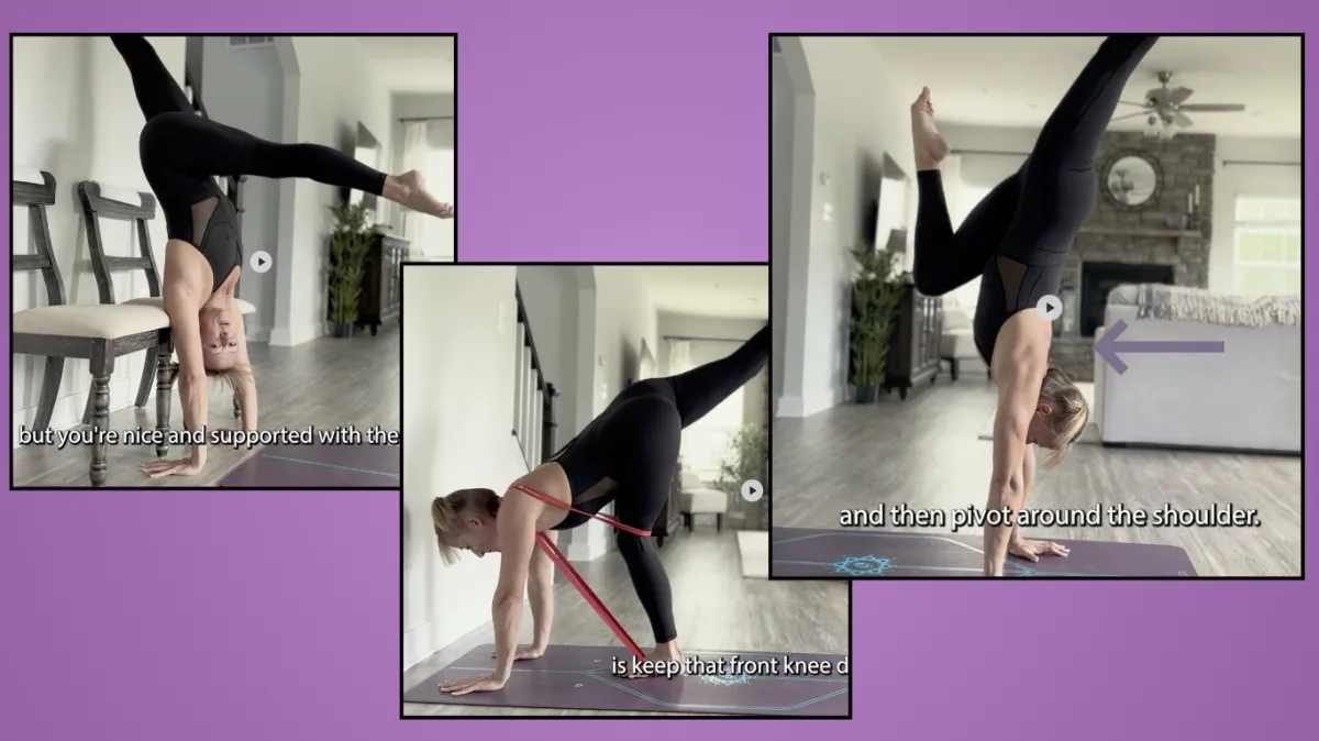 We get it. Life gets busy! That's why we offer over 60 live classes each week from 8am-9pm ET, ranging from beginner to advanced levels and covering everything from handstands, flexibility, strength training and more. (Scroll up to see the full schedule and description of classes)