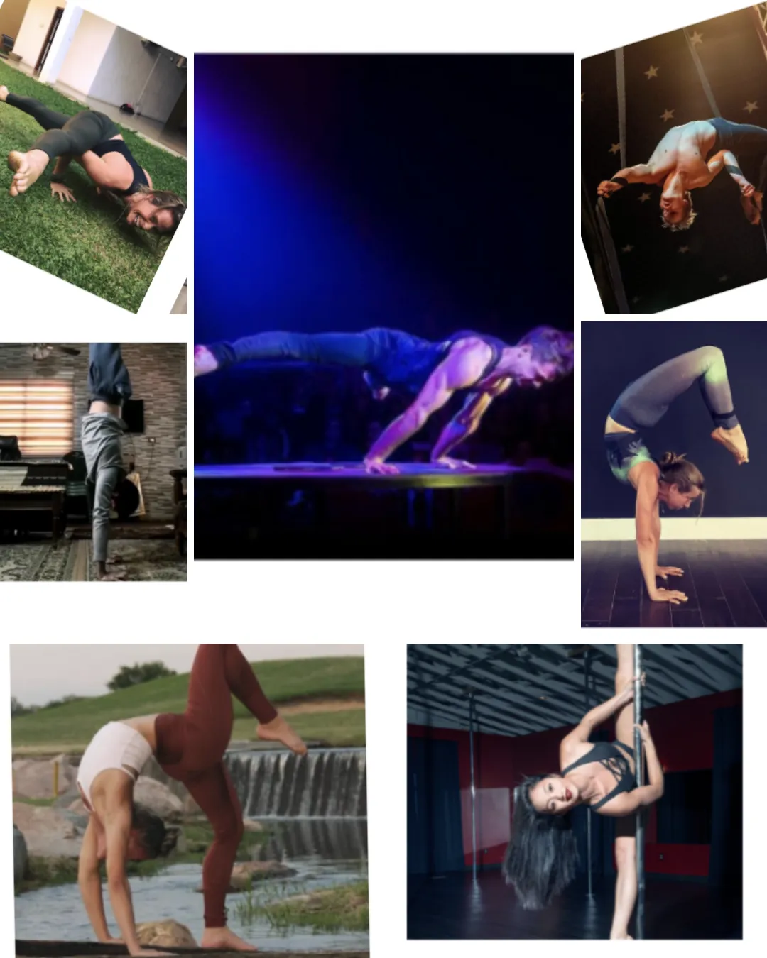 A few years later, she began to explore contortion training and pushing her body to the limit, and now enjoys sharing this passion with her students.